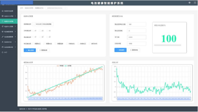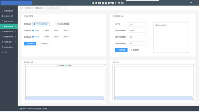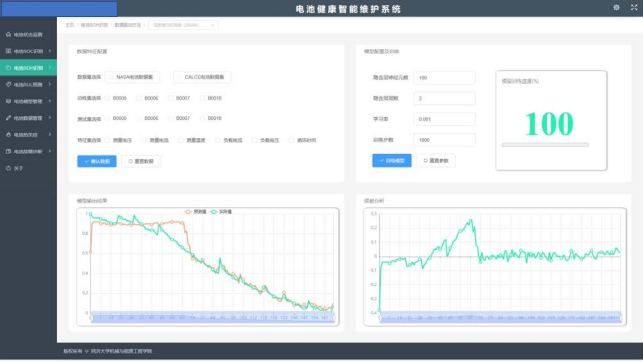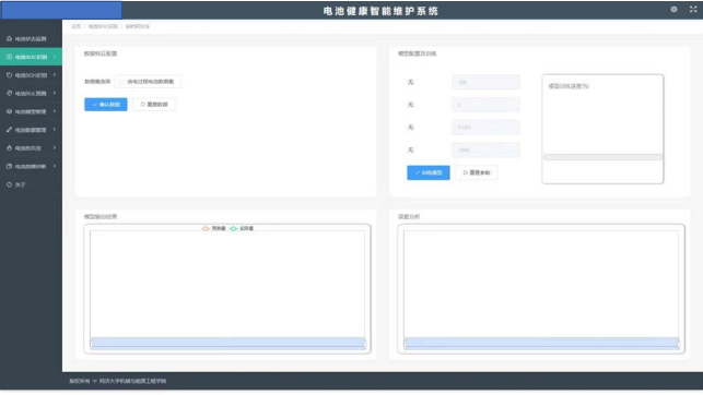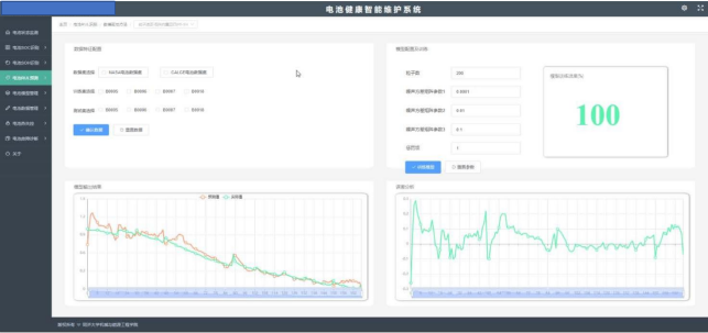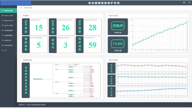 模式,通过前端与后端集成开发,采用开放的、模块化、多层架构的设计思想,采用了最新的信号处理、机理模型、机器学习、人工智能、深度学习、数据挖掘等技术,实现电池(组)故障诊断与健康退化预诊维护,进行电池基本状态、可靠性服役数据、历史充放电行为、健康变化趋势图、健康度评估与预测,剩余寿命预测全面对电池(组)进行健康状态评估与预测。