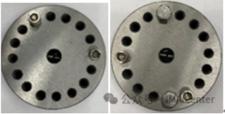 左为工况 1 不平衡配重情况,右为工况 2 ,工况 3 与工况 2 不平衡分布相同,区别在于负载螺钉重量不同 |
