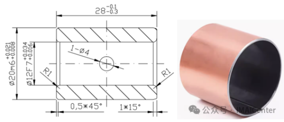 高力黄铜,硬度 HB210-270, 摩擦系数 μ<0.16, 油润滑 5m/s ,居中 4mm 通油孔 |