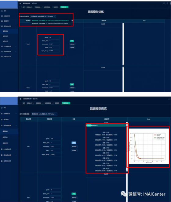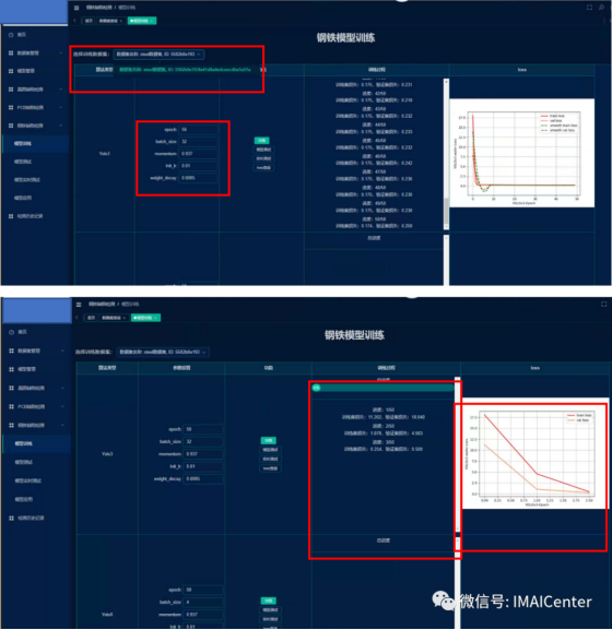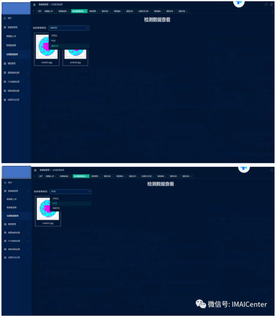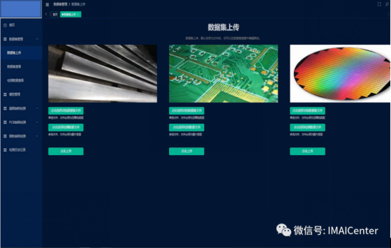 (1)该界面的主要功能是对数据集进行上传,包括训练以及检测数据,由于用于训练的检测数据集是包括标签与图片的,上传时需要将标签与图片文件打包成压缩文件形式上传,待检测数据为图像格式。选择完数据后,点击上传,即可完成对数据集的上传。