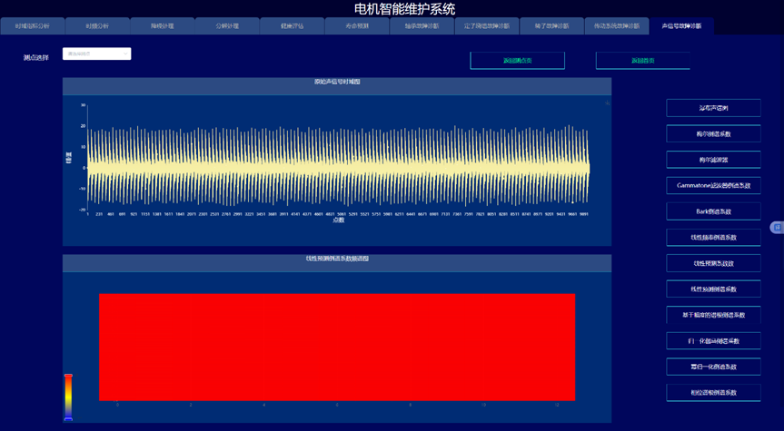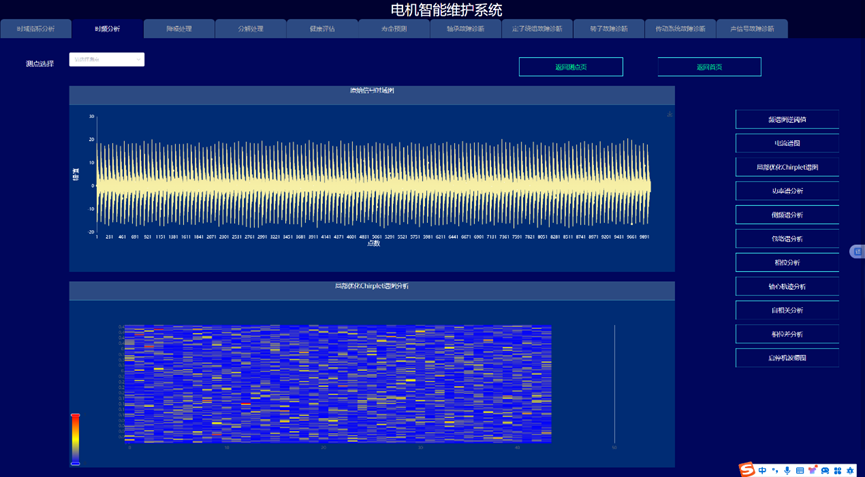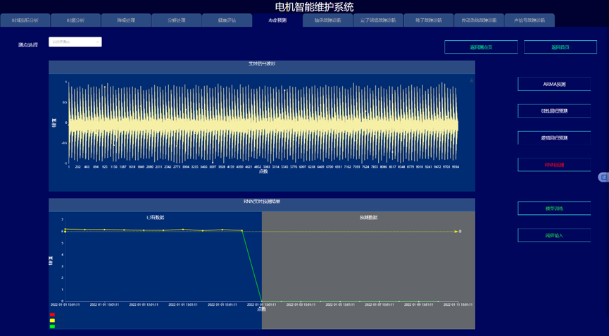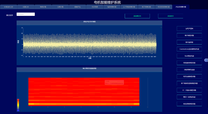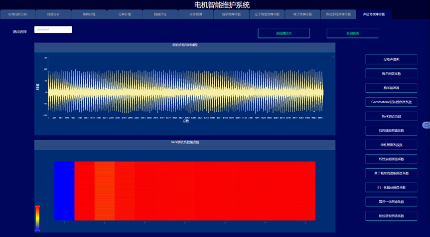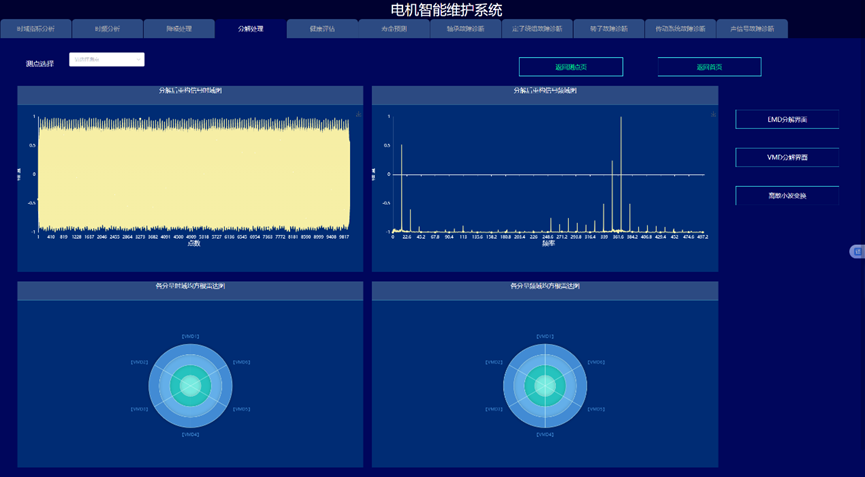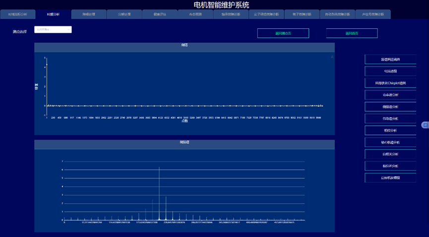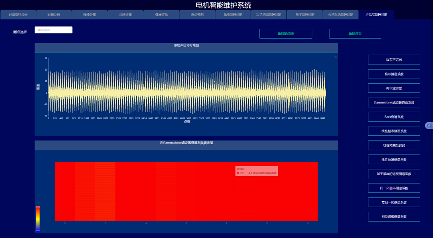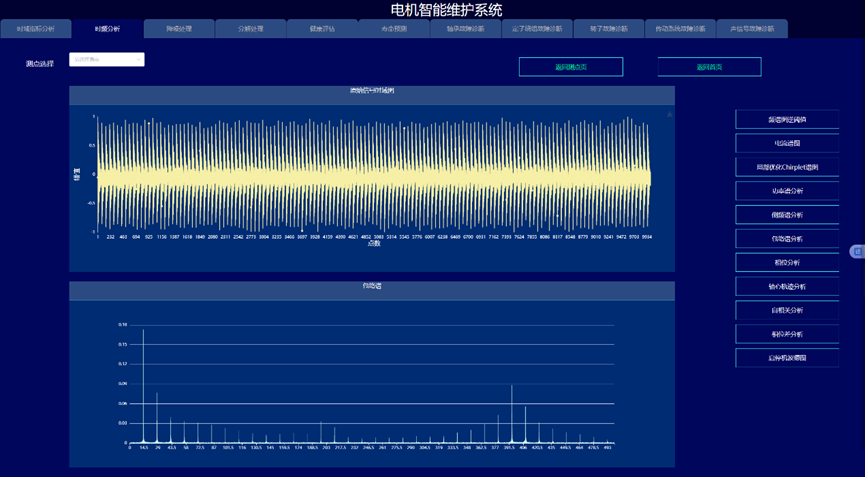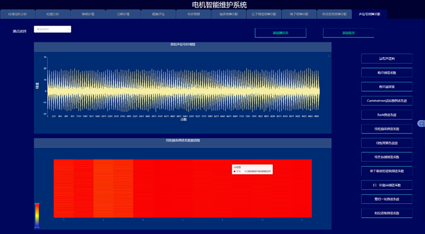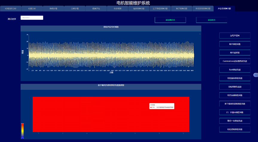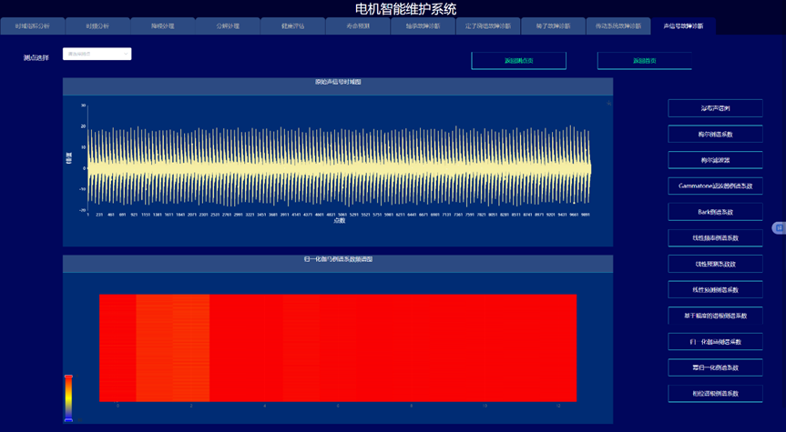通过构建信号处理与深度学习驱动的电机故障诊断与健康预诊系统,实现变变速与变载荷条件下的电机的故障诊断与健康量化趋势评估与寿命预测,以提高电机可靠度以及有效延长机械使用寿命为目的。系统采集电机的振动、声信号、电流、电压、温度,开展电机的轴承、定子、转子等故障监测与健康预诊。通过各种信号处理算法的深入应用,建立基于信号去噪和缺陷特征提取的故障诊断和预示方法,达到提取强噪声下多传感信号的弱故障特征达到缺陷早期预示的目的。在信号智能感知技术攻关的基础上,利用多传感器技术和大数据技术,建立健康趋势监测与预测系统,对其进行有效监控与故障诊断。