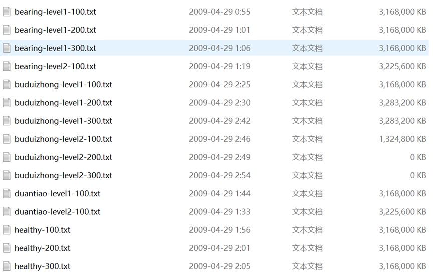 多传感数据采集:振动、声信号(麦克风)、声发射、红外数据文件夹均按时间顺序排列,依次为: