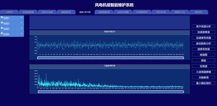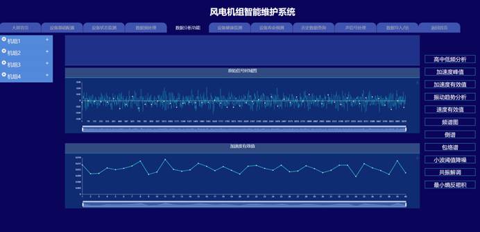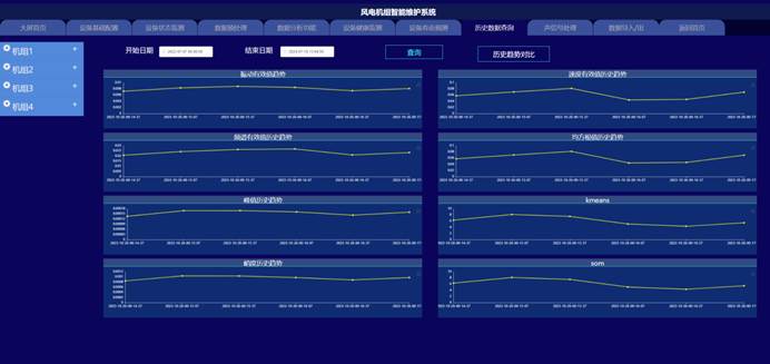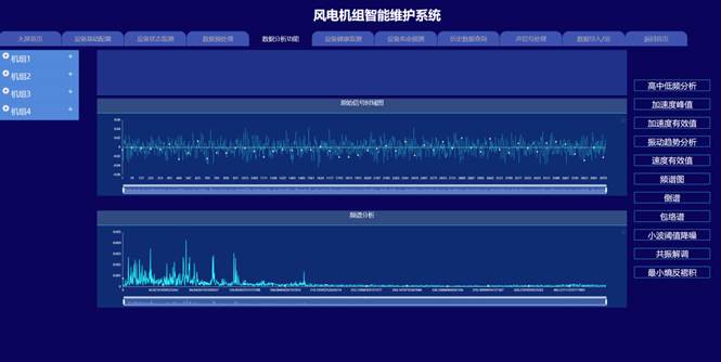 1)风机组态与预警:建立不同风机的组态,可视化呈现预警。