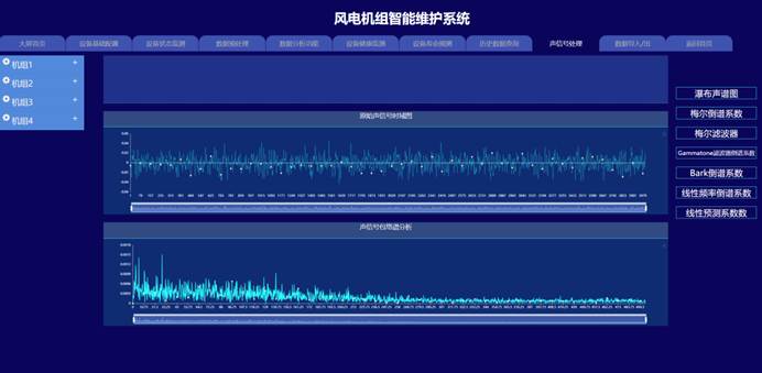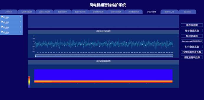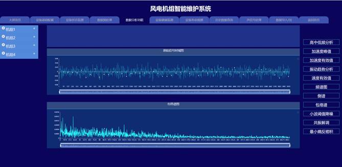 (3)信号分析处理工具箱模块:该模块包含各类信号分析处理算法,并显示相关结果,包括基于振动信号的频谱、包络谱、时频表示、各类信号降噪方法、变转速信号分析以及信号分解算法,实现关键机械部件(轴承、齿轮等)的早期缺陷预示;基于声信号处理的变速箱、发电机故障探测与诊断模块。