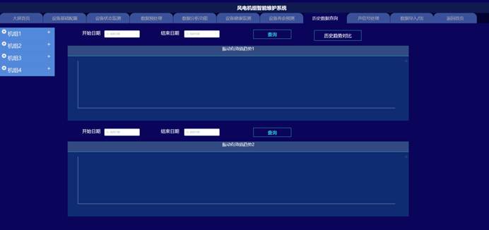 (2)历史趋查询分析势模块:用户在该模块可以根据需求查询各部件对应的历史数据,设置检索历史信息的起始时间,点击按时间查找显示数据库记录列表,系统会自动切换到历史数据处理。