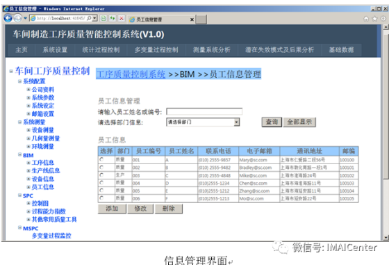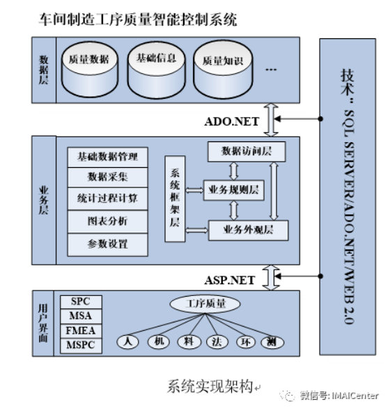 针对智能制造环境下复杂的车间制造环境,进行实时有效的质量波动监控、异常波动的诊断分析、异常溯源、工艺优化以及过程中适时的工序调整是进行制造过程质量控制面临的问题。WKQCAgent集质量监控-异常诊断-工序调整为一体的工序质量控制模式,构建了系统功能体系结构。本软件系统采用多层体系架构。实际上,多层架构是从典型的三层应用架构发展而来的。三层应用架构把系统分为表现层、业务层和数据层。其中业务层集中了系统的业务逻辑处理,是软件应用系统中的核心部分,业务层设计的好坏很大程度上决定了应用系统的健壮性、灵活性、可重用性、可升级性和可维护性等性能。由于业务层的实现往往比较复杂,将业务层细分为业务外观层、业务逻辑层和数据访问层。除了这些标准的层次划分外,还设计了一些贯穿多层的封装实体对象或系统操作功能的业务实体层和系统框架层。WKQCAgent主要功能模块包括:基础数据管理、测量系统分析、统计过程控制、多变量过程控制、失效模式分析等。
