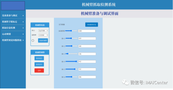 1. 设备调试,包括机械臂的运行测试,摄像头的标定与读取信息