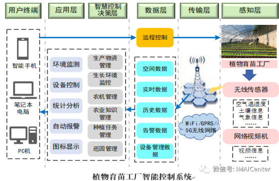 在植物生长过程中,温度、湿度、光照、水肥浓度等环境要素直接影响植物的产量与质量,其中光照是植物培育过程中非常重要且不可缺少的因素,因此监测温室中光质、光量、光周期等光照条件对植物生长以及指导灌溉等都有着重要意义。本系统以人工光型植物育苗工厂智能控制为切入点,通过多传感器智能感知、光照要素信息融合、光环境智能控制等关键技术突破,研制人工光型植物育苗工厂智能控制系统,分布式传感智能感知与人工智能驱动的LED调光系统;根据光环境因子的不同,从光质、光强、光周期三个光要素突破大数据与人工智能驱动的人工光型植物育苗技术,实现光调控植物育苗的精准化与智能化。在完成光照要素信息处理融合的基础上,基于物联分布式智能光控平台的光环境智能控制技术,建立了一套人工光型植物育苗工厂智能控制系统,并在上海市大型农业企业的育苗工厂得到了示范应用。