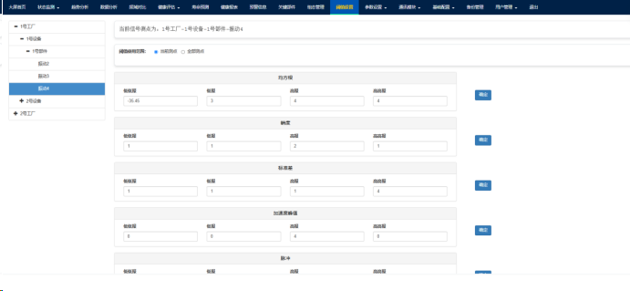可手动或者自动设置每个测点对应的阈值,同时也可以选择机器型号后自动设置对应型号机器的阈值。如Fig. 13-1.所示。
