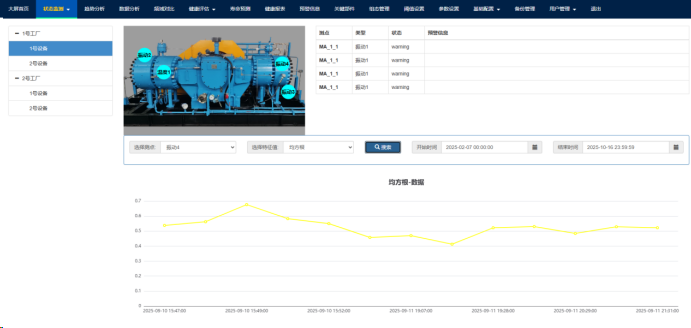 机械设备健康监测与智能维护系统聚焦于机械装备运行状态的监测与预警,是一款集数据采集、处理、分析和预警于一体的专业系统。