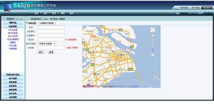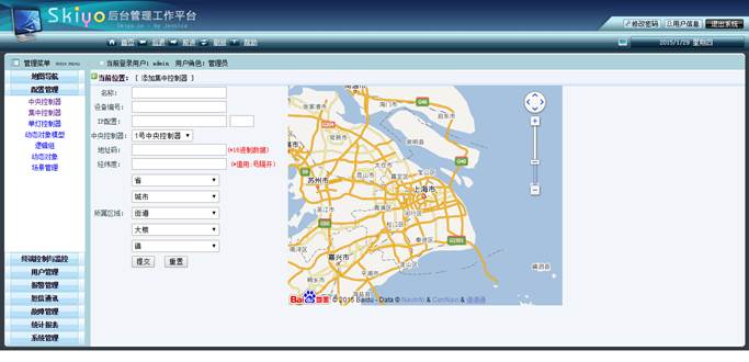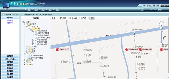 d.中心控制器位置导航:位置导航,中心控制器基本信息,中心控制器和终端状态统计并在地图上动态显示(可包括开、关、调光状态、健康状态、电量消耗状态)管理