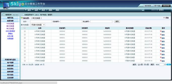 c.设备管理:中心控制器、灯具等