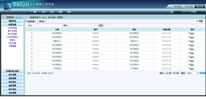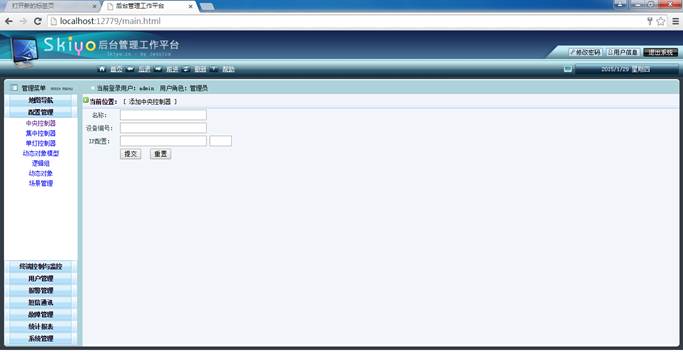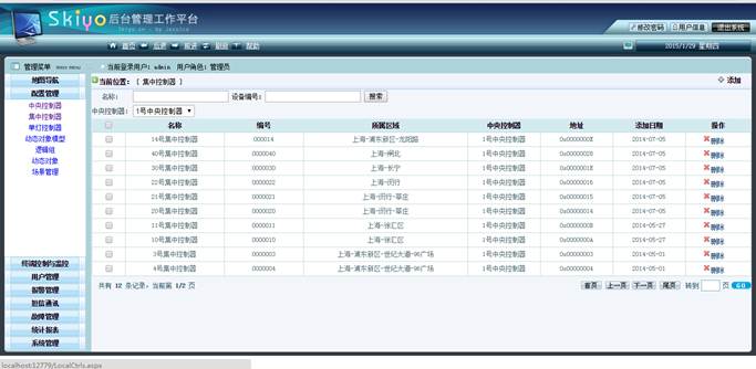 b.用户权限管理:超级管理员对普通管理员分组管理,每组权限设置:1)菜单权限管理,2)多层嵌套权限管理(城市-区域-街道-大楼-。。。-中心控制器-控制终端)