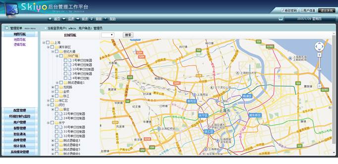 a.分三大类导航联动:地图(采用Baidu map)导航,树形导航,分类嵌套导航,产生三大类导航联动效应,用户可自行管理相关范围嵌套层次