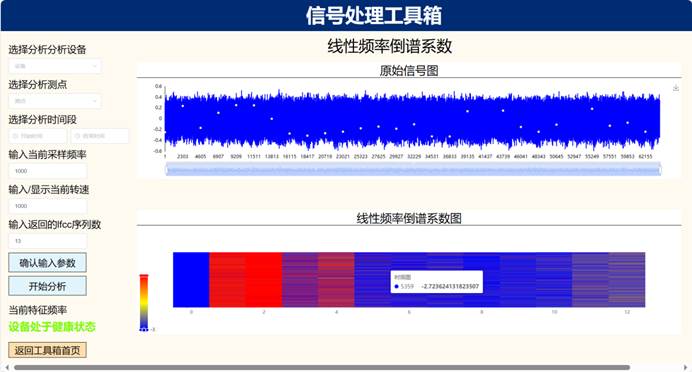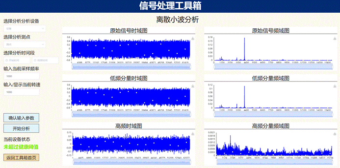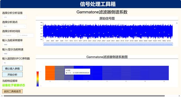 (1)时域频域信号处理模块:信号滤噪、频谱分析、时域统计分析、时频域分析、多传感信息融合、故障分离、故障诊断、多故障诊断、变转速诊断等功能;